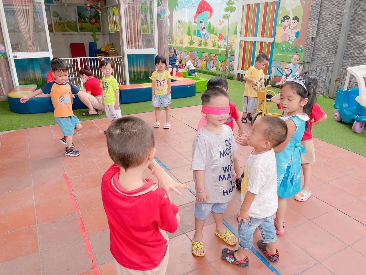 Sân chơi và phòng học rộng với nhiều cửa sổ thoáng đón ánh sáng tự nhiên,