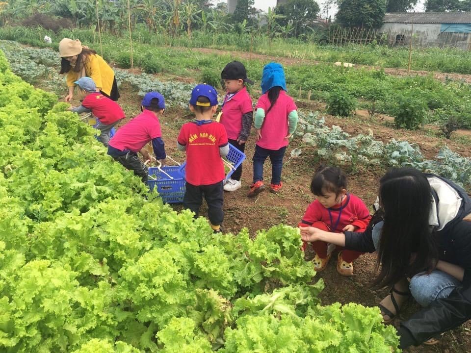 Trường có nông trại riêng để có thể đưa các con đi khám phá, trải nghiệm. Trẻ được tiếp xúc với thiên nhiên, cỏ cây từ đó phát triển toàn diện 5 giác quan của trẻ.