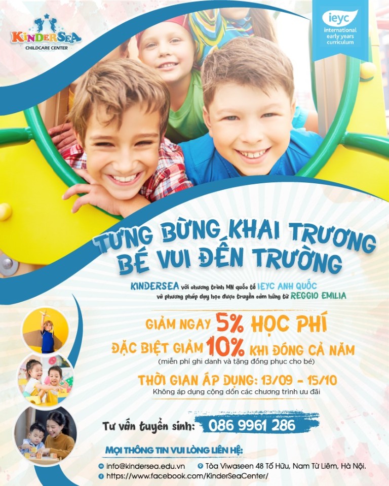 Trường Mầm Non Song Ngữ KinderSea - Tố Hữu sử dụng chương trình giáo dục mầm non quốc tế bản quyền IEYC( Anh Quốc) bằng 2 ngôn ngữ Tiếng anh và Tiếng Việt.