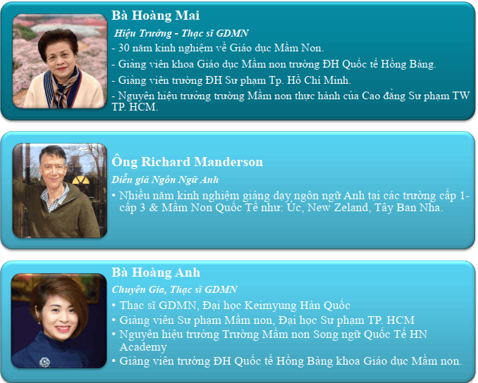 Đội ngũ nhân sự của Trường Mầm Non Song Ngữ KinderSea - Tố Hữu đều có nhiều năm kinh nghiệm trong lĩnh vực giảng dạy mầm non.