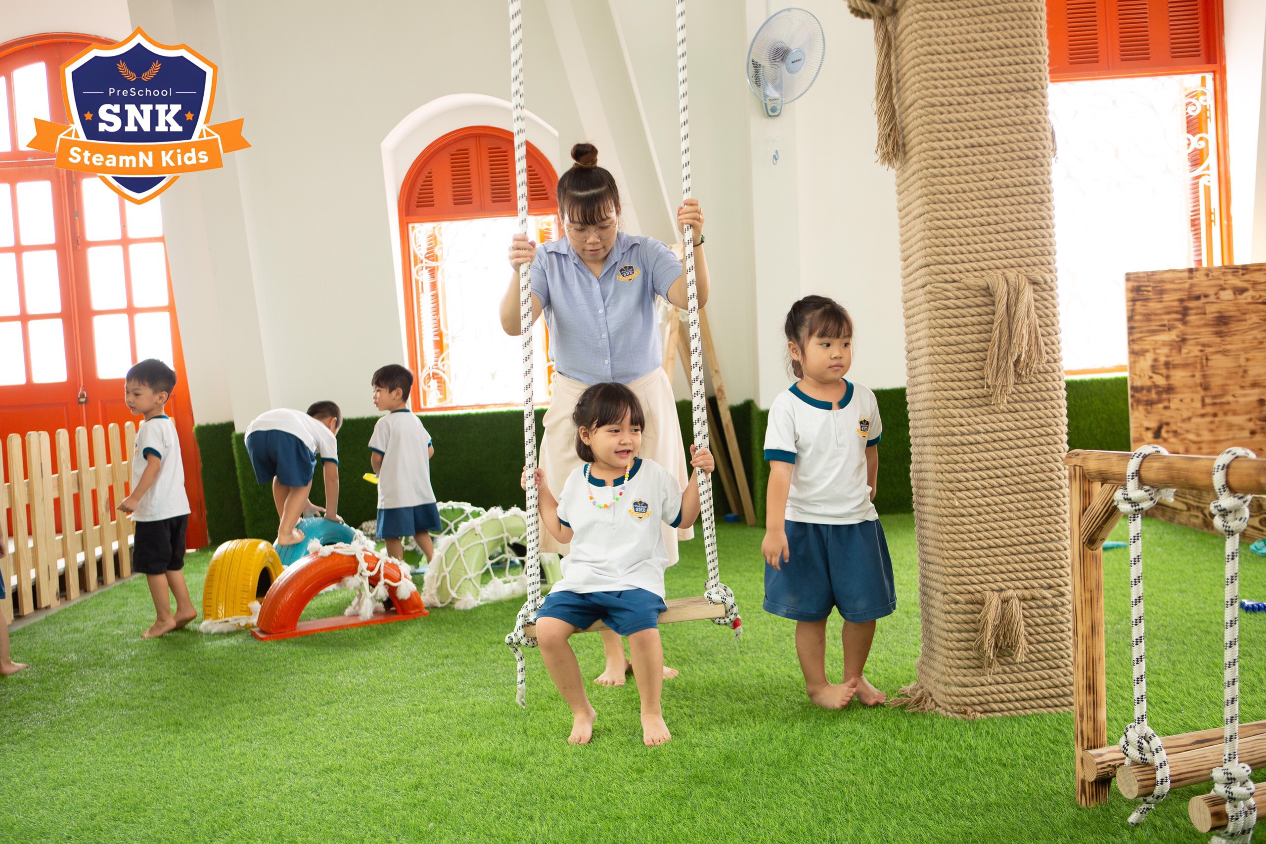 ⭐ Môi trường học tập an toàn, đầy cảm hứng với sân chơi trong nhà rộng, thoáng và sân chơi ngoài trời, đảm bảo mỗi ngày trẻ đều được tham gia các HOẠT ĐỘNG KHÔNG CÓ TƯỜNG NGĂN.