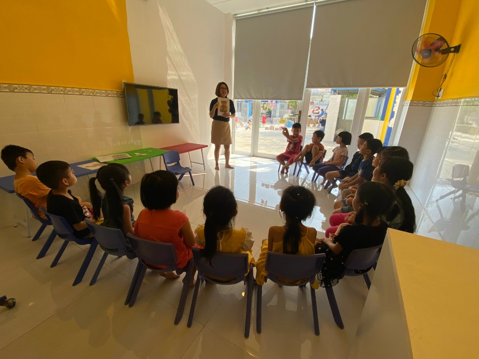 Chương trình song ngữ với giáo viên ngoại quốc tăng cường khả năng giao tiếp và phản xạ bằng ngôn ngữ thứ 2 của bé.