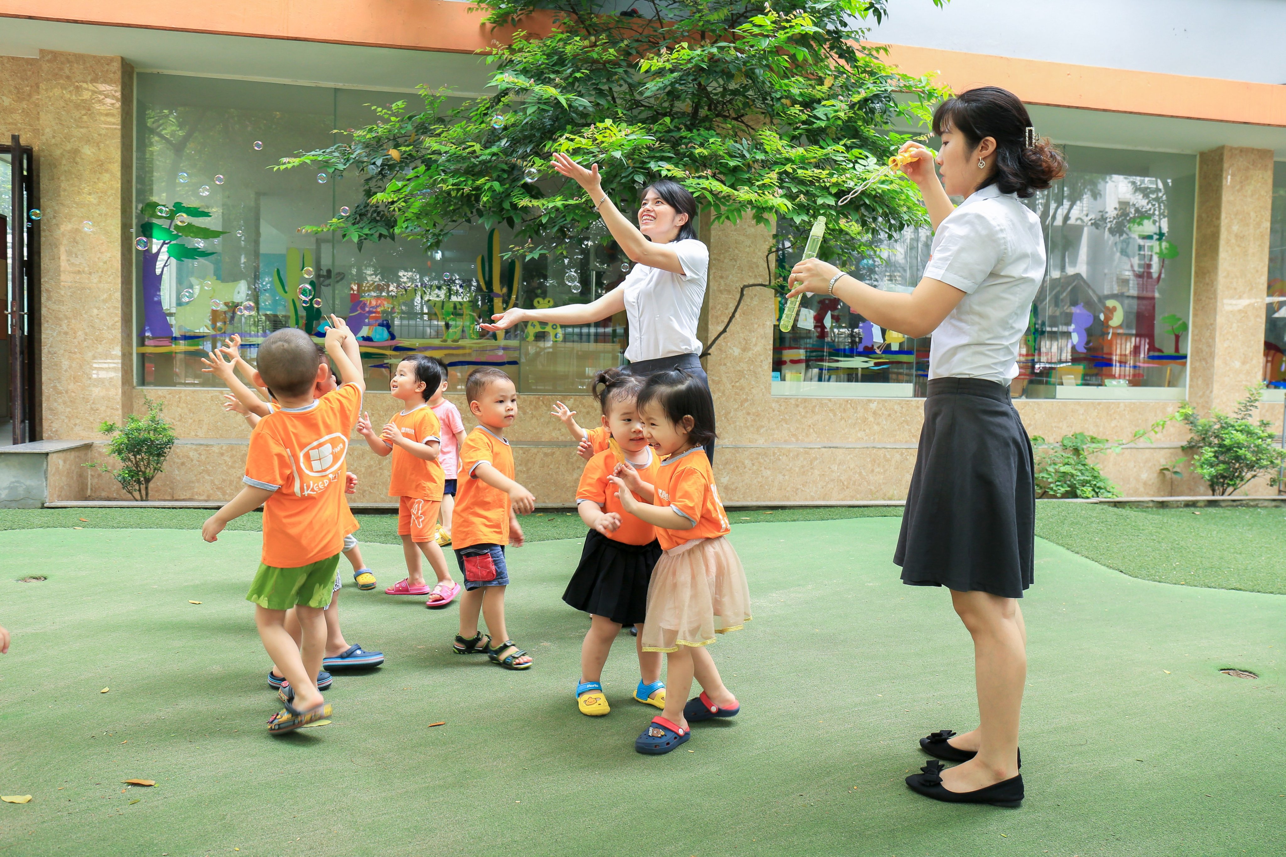 Thực hiện chương trình hỗ trợ của Trường Mầm non Thăng Long, tập trung vào sự phát triển tự nhiên của trẻ