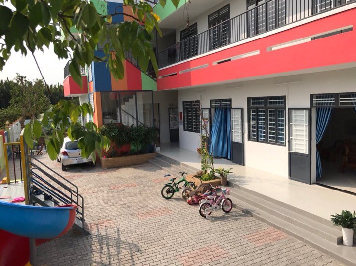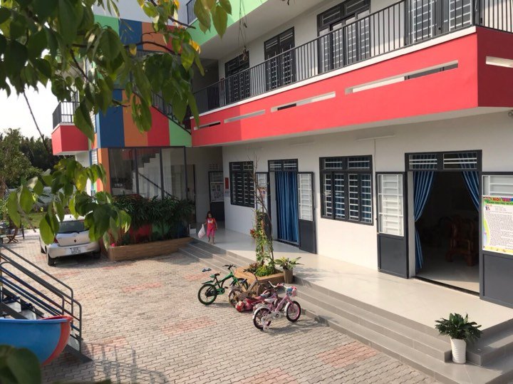 Trường được xây dựng trên diện tích 1000m đất, phòng học rộng 40-50m vuông, có 2-3 cửa sổ thông thoáng, có 2 lối thoát hiểm an toàn phòng cháy.