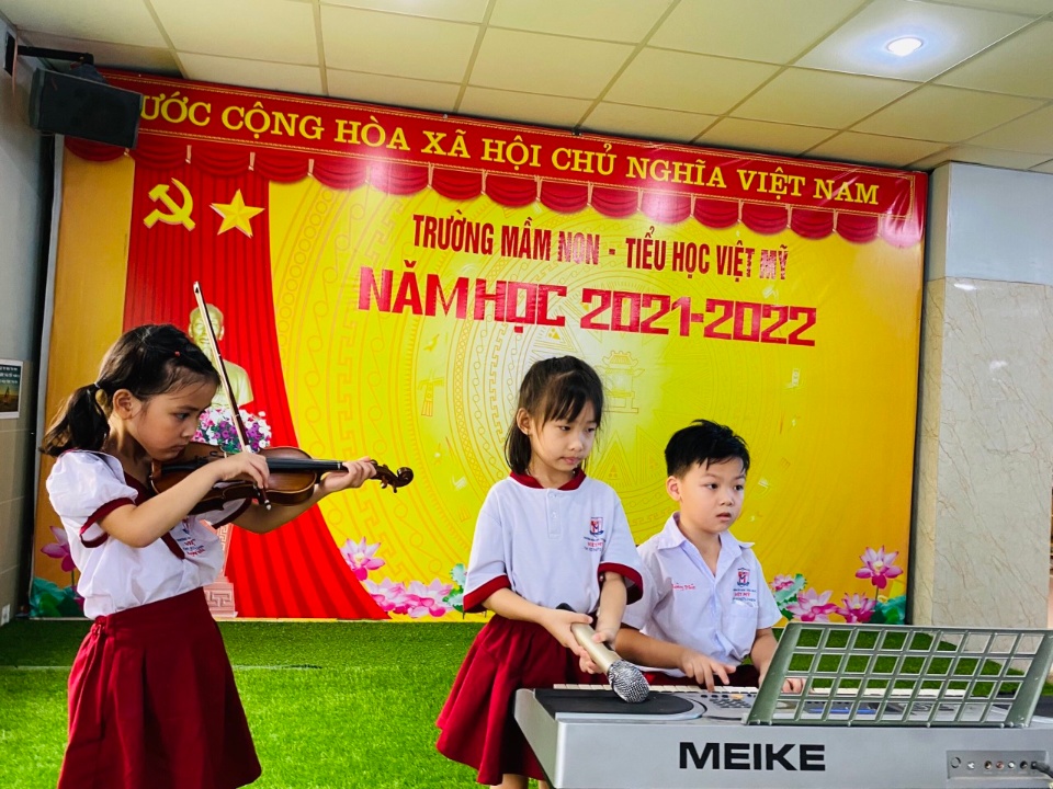 Trường Mầm Non - Tiểu Học Việt Mỹ - KDC Tân Đông Hiệp dạy song song 2 chương trình. Chương trình chuẩn của Bộ giáo dục đào tạo, và chương trình học quốc tế Cambridge.