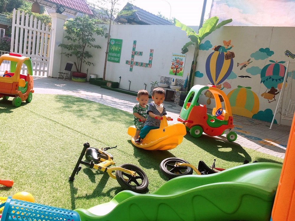 Diện tích trường rộng rãi, để đảm bảo các bé có khoảng không gian vừa học vừa chơi thoải mái. Khuôn viên ngoài trời có hệ thống sân cát cho trẻ phát triển toàn diện về thể chất và tâm hồn.