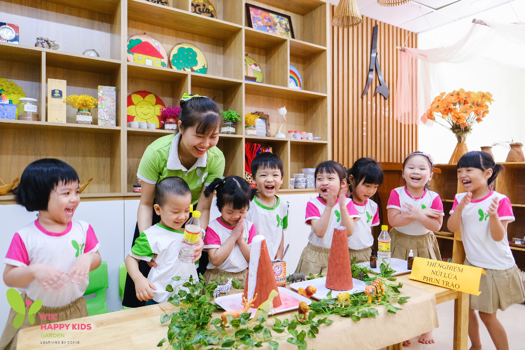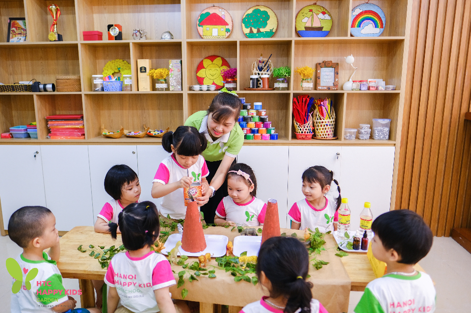 Chương trình học của mầm non Happy Kids Garden - Phương Liệt kết hợp các phương pháo giáo dục sớm tiên tiến: Montessori, Reggio Emilia, STEM + Art tạo cơ hội cho các bé được tiếp xúc với nhiều trải nghiệm, từ đó tìm ra và phát huy tiềm năng của trẻ.