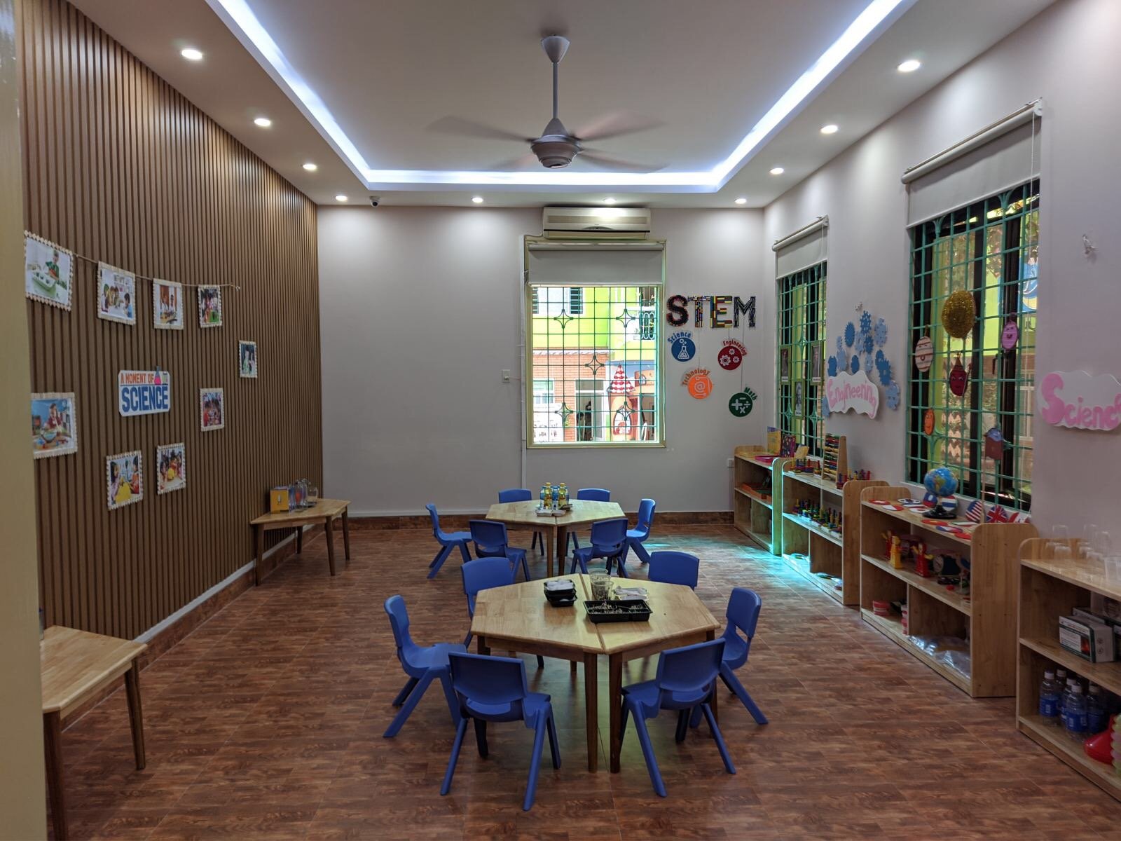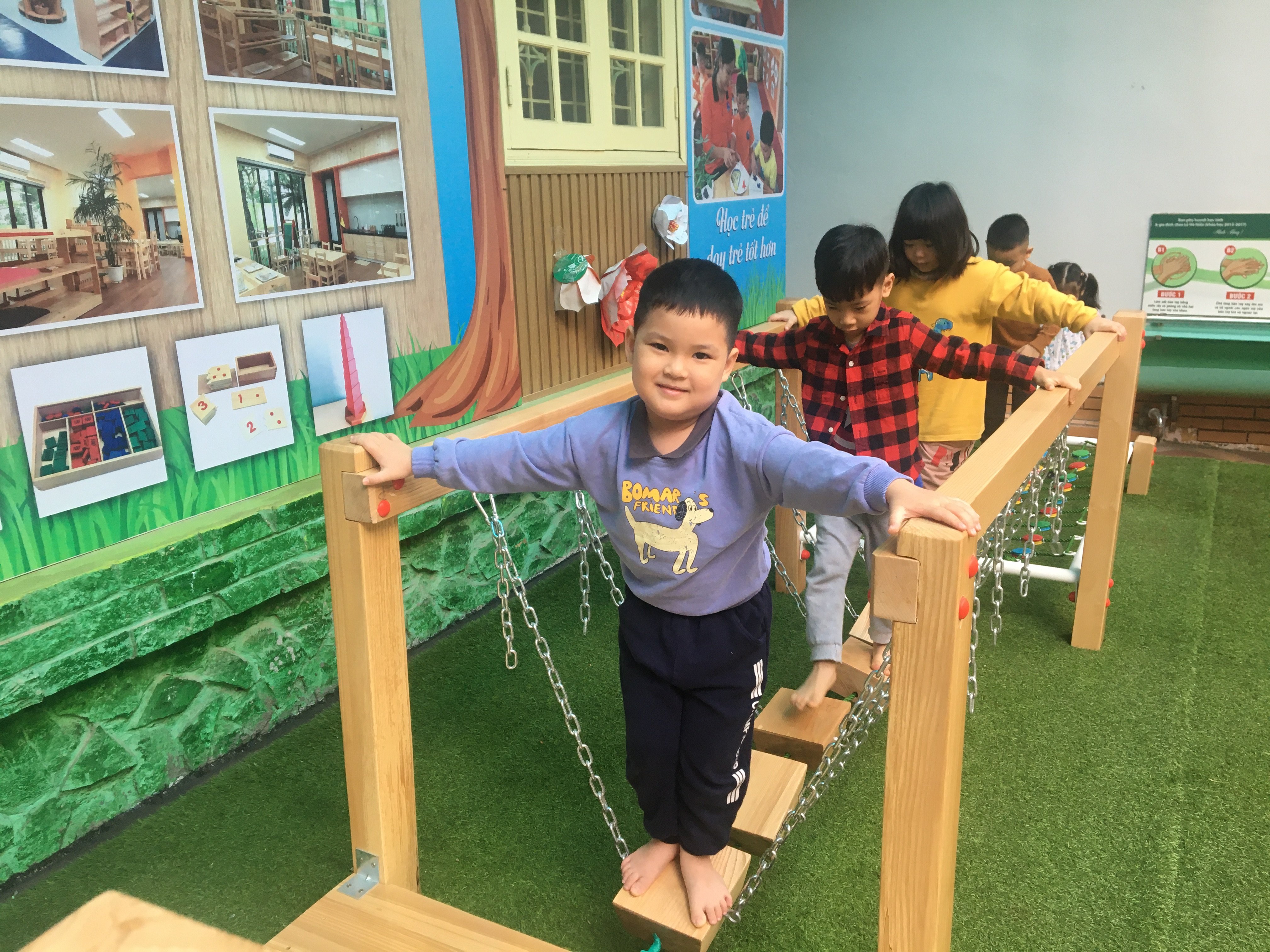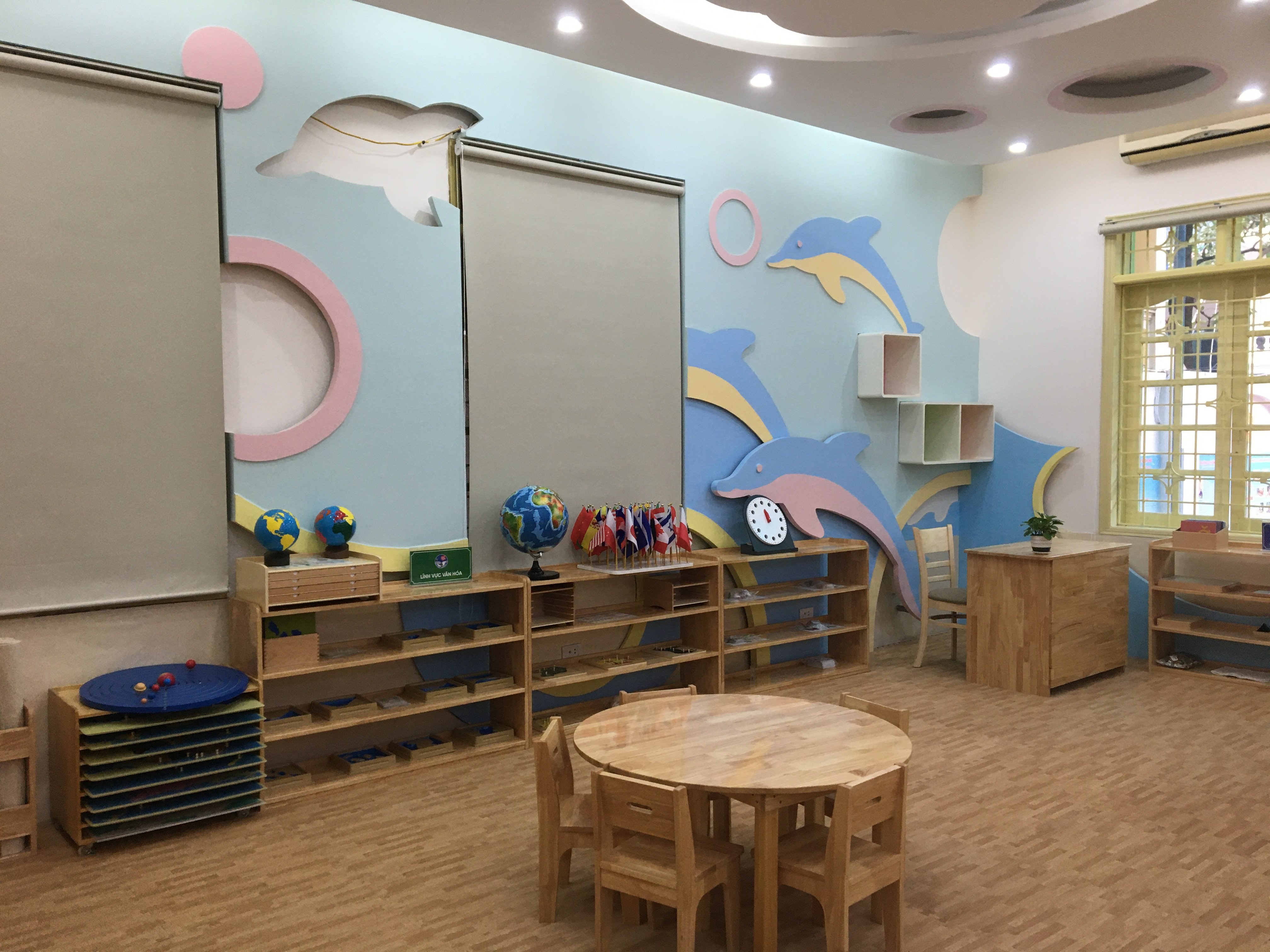 Các lớp học được thiết kế tối ưu ánh sáng và không khí tự nhiên rất tốt cho sự phát triển của trẻ nhỏ. Bộ giáo cụ của các lớp học phù hợp với các lứa tuổi, đạt tiêu chuẩn về an toàn chất lượng.