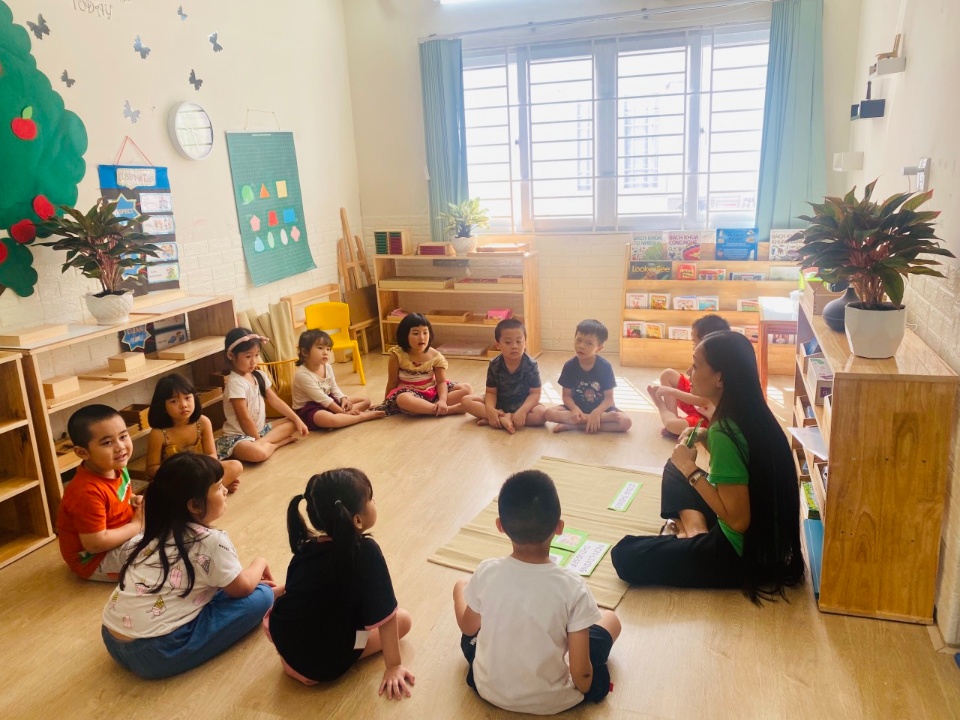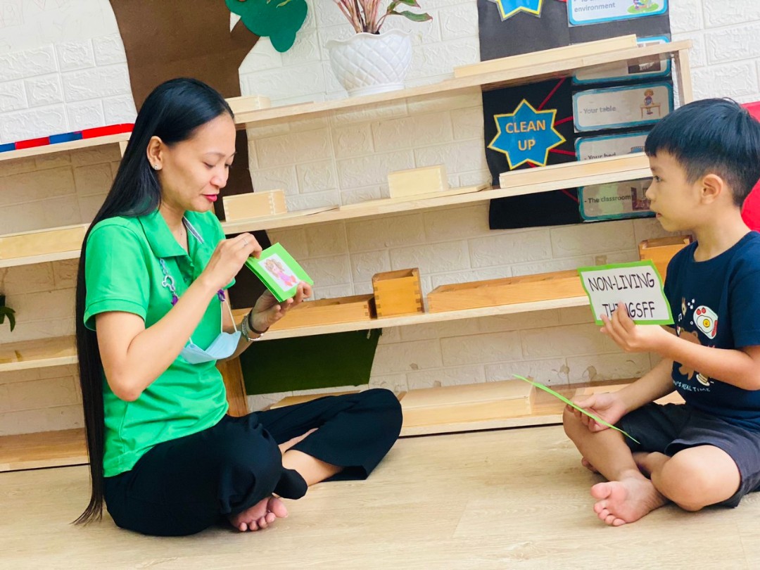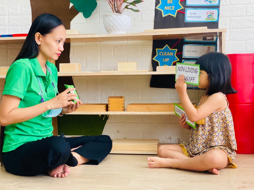 - Dạy theo phương pháp Montessori với mong muốn cùng với Ba Mẹ tạo ra một môi trường thích hợp, giúp trẻ có thời gian và cơ hội đầy đủ để rèn luyện các hoạt động giúp trẻ khám phá, cảm nhận thế giới xung quanh mình, giúp trẻ rèn luyện TÍNH TỰ LẬP, SỰ TỰ TIN VÀ KHẢ NĂNG THÍCH NGHI TỐT ở các môi trường khác nhau ở giai đoạn sau 6 tuổi