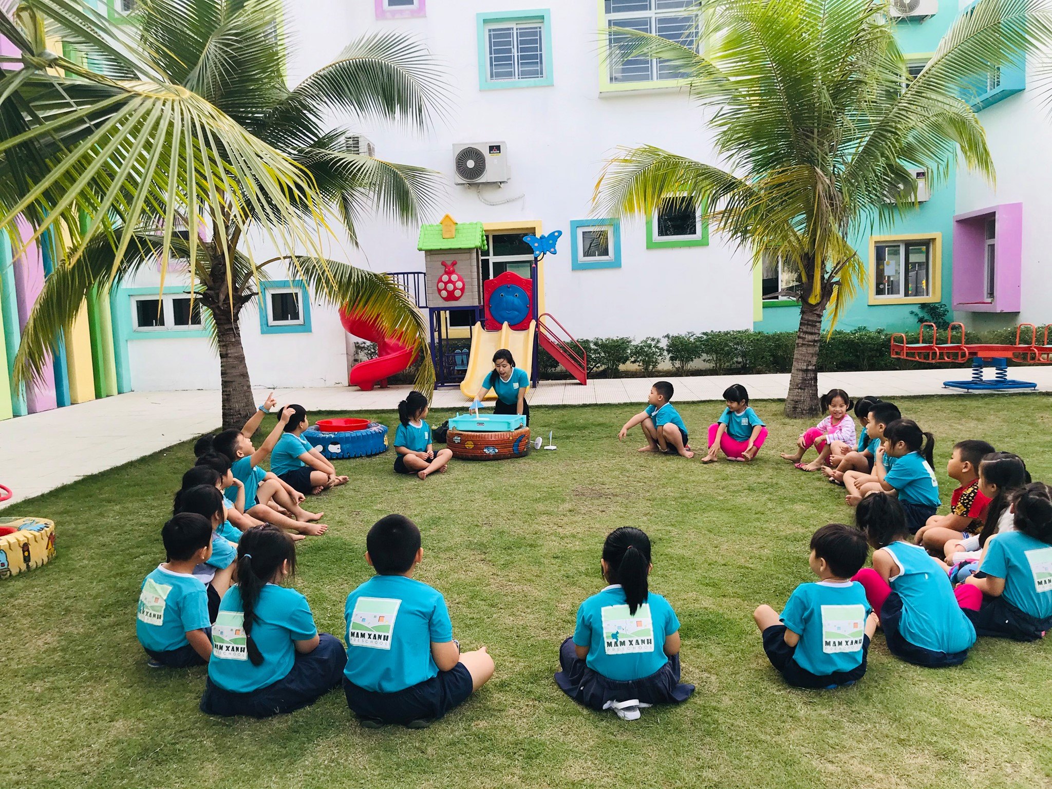 ? CƠ SỞ VẬT CHẤT NHÀ TRƯỜNG ĐẠT TIÊU CHUẨN QUỐC TẾ, DIỆN TÍCH GẦN 1 HECTA, 4 mặt thoáng đón sáng, đón nắng tự nhiên, CON SẼ ĐƯỢC VUI CHƠI TRONG MÔI TRƯỜNG THIÊN NHIÊN & BẦU KHÔNG KHÍ TRONG LÀNH.